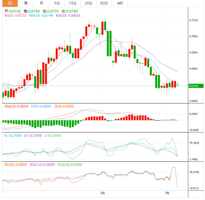 支撑位:0.6739 0.6708 0.669