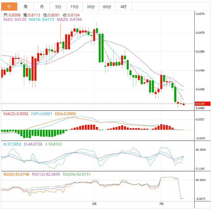 支撑位:0.6082 0.6061 0.6026