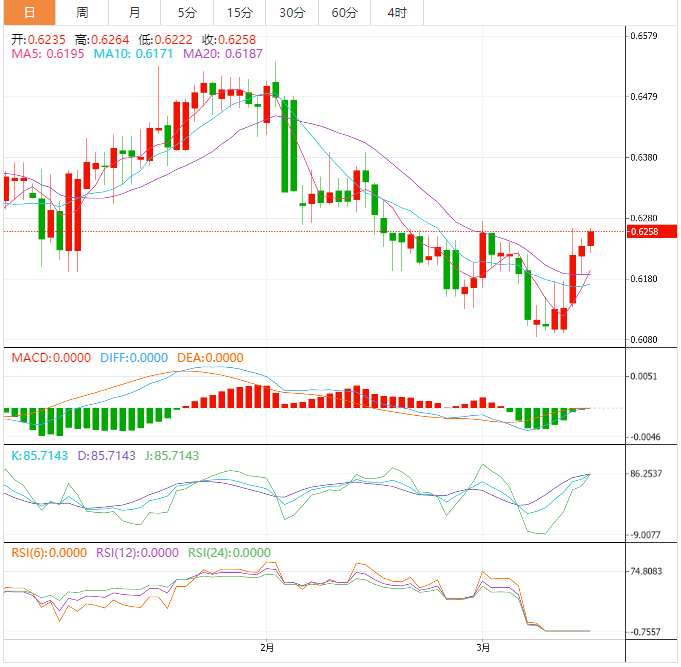 阻力位:0.6257 0.6278 0.6308