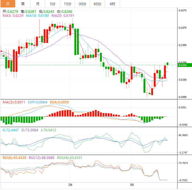 周一亚洲交易时段早盘,纽元兑美元在突破当前阻力位0.6280上行时面临障碍。由于投资者正在等待中国人民银行(PBoC)公布利率决定,以采取进一步行动,预计新西兰元资产将继续处于紧张状态。
