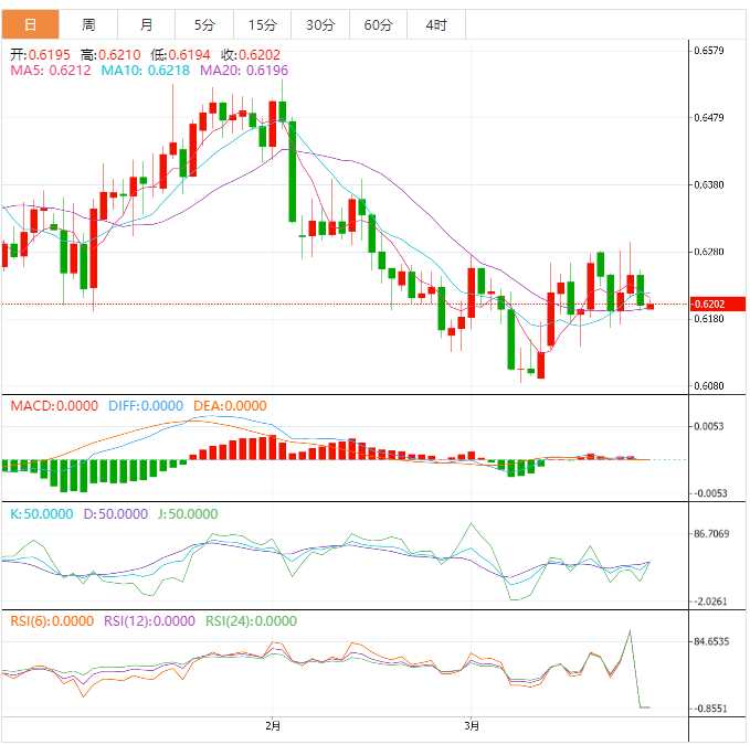 另一方面,3月21日的低点0.6167将拖累该资产向3月15日的低点0.6139进发。如果跌破后者,该资产将进一步下行至一轮支撑位0.6100。