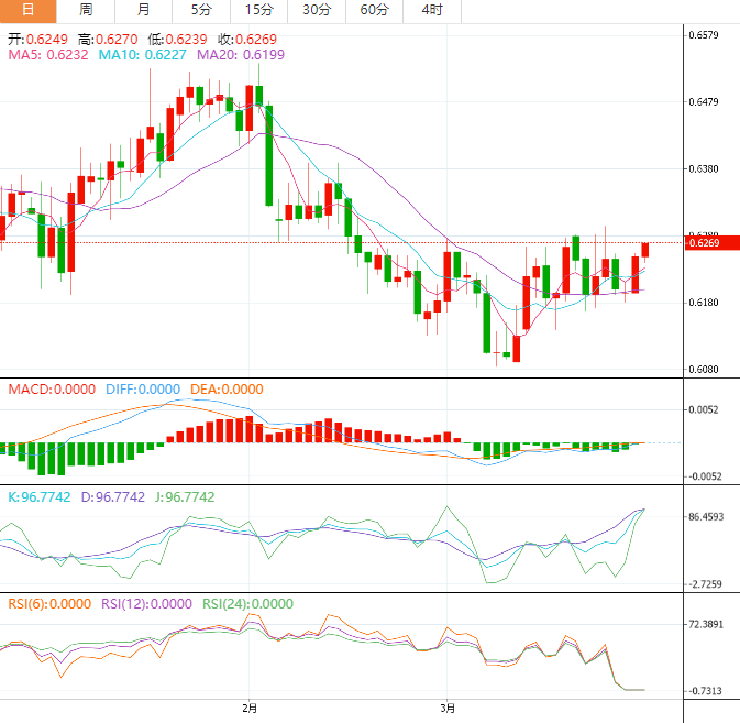 阻力位:0.6274 0.6295 0.6335