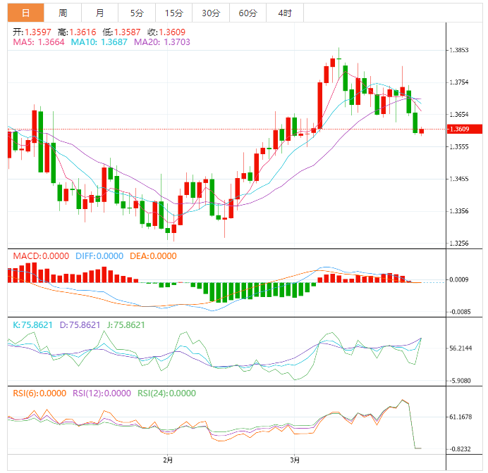 阻力位:1.3667 1.3733 1.377