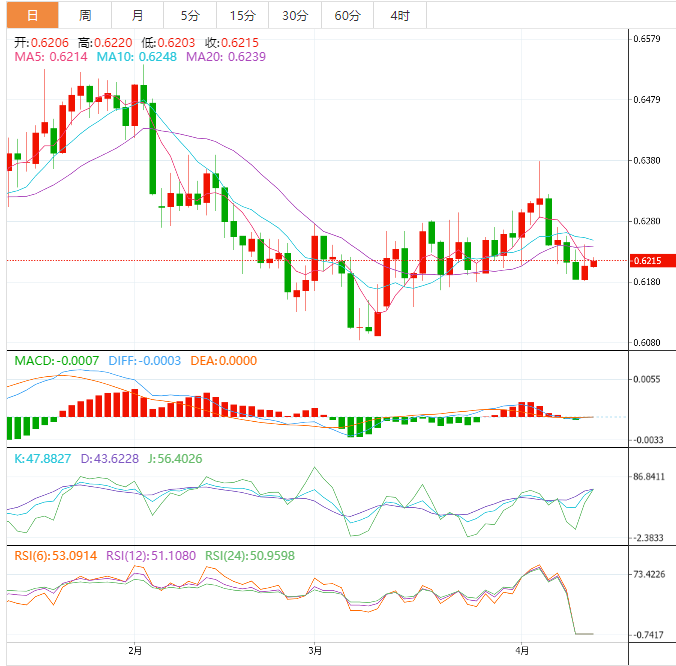 周四欧市盘前,纽元兑美元在0.6210-0.6220的窄幅区间内来回波动。由于美元指数在激烈的抛售之后出现了一些复苏,新西兰元资产已经转向横盘。此外,乐观的中国国际贸易数据(3月)未能给新西兰元注入血液。