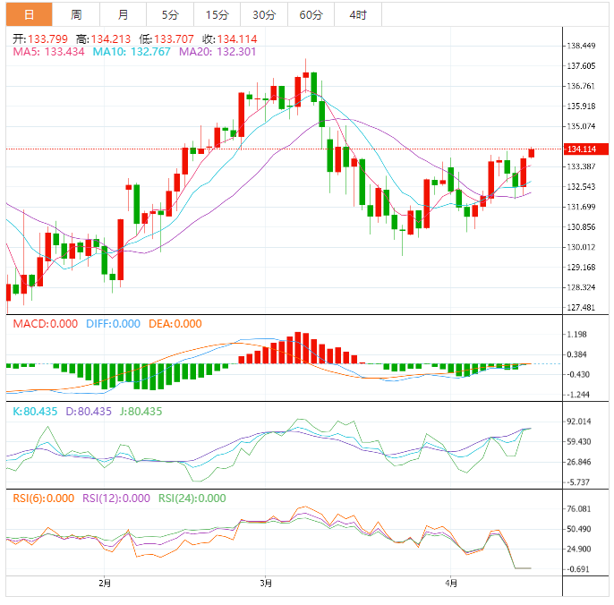展望未来,如果突破盘中高点134.10,将推动美元走向3月06日的低点135.37,随后是3月10日的高点137.00。