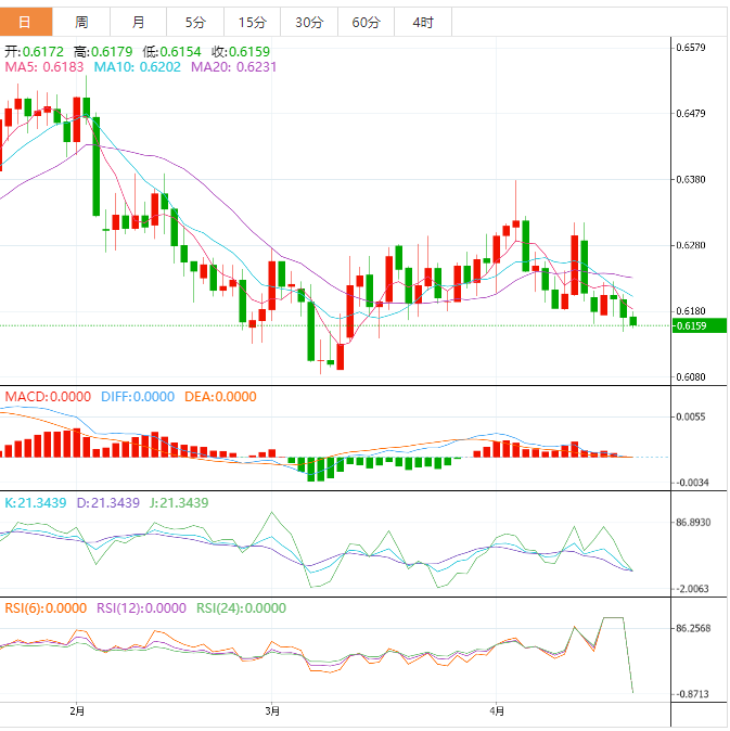 支撑位:0.6173 0.6145 0.6118