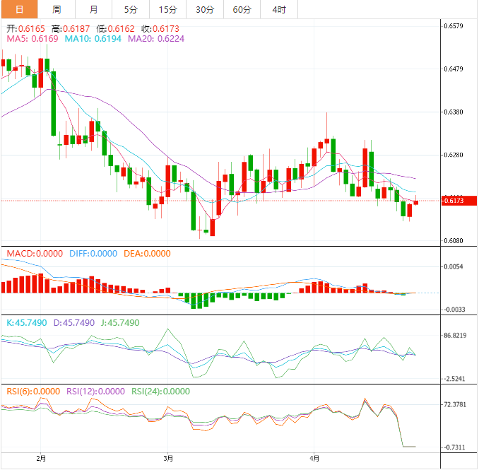 或者,如果突破4月20日的低点0.6148,将把该资产拖向4月24日的低点0.6125,随后是0.6100的一轮阻力位。