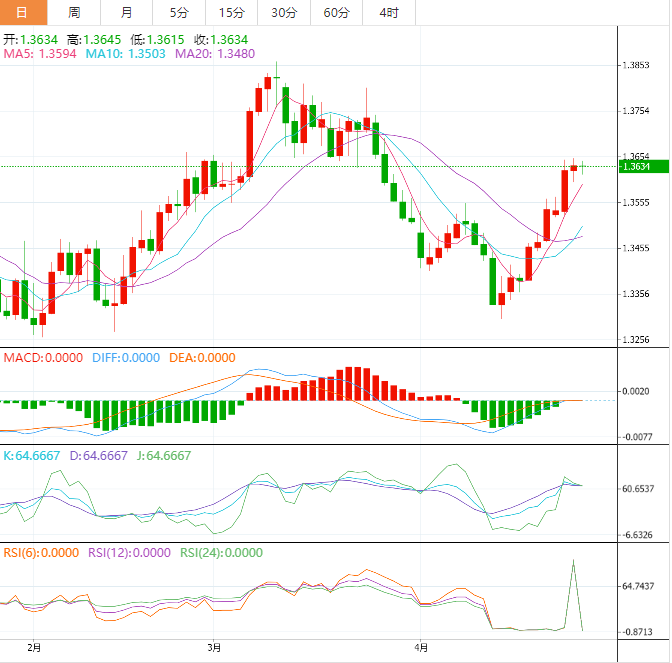 美元兑加元努力利用近期从1.3300关口的强劲反弹,该关口是4月14日触及的两个月低点,周四上半交易日小幅走低。不过,在欧洲盘早盘,该货币对成功守住了1.3600的关口,目前位于周三触及的近一个月高点下方。