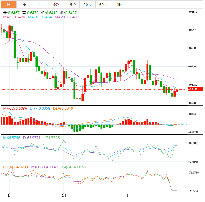 阻力位:0.6168 0.6189 0.6216