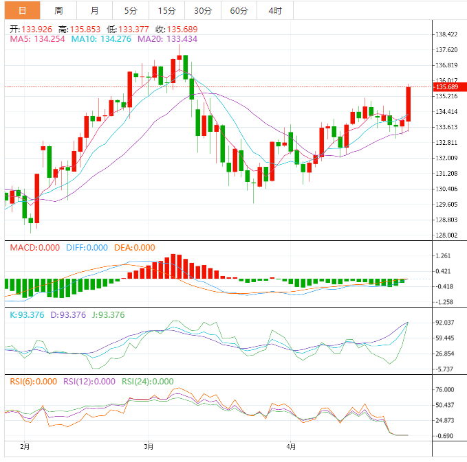 美元兑日元从日低点反弹超过250点,并在周五欧洲盘早盘升至135.85附近的3月10日以来最高水平。