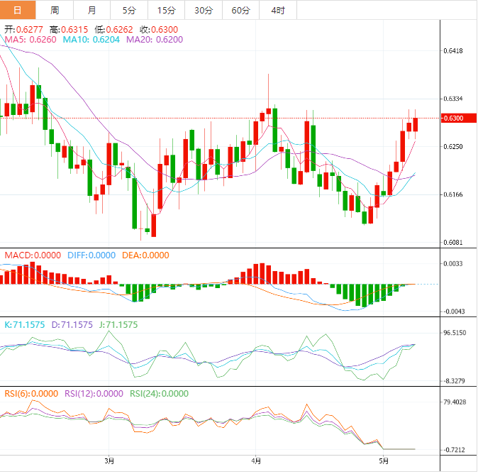 支撑位:0.6253 0.6232 0.62
