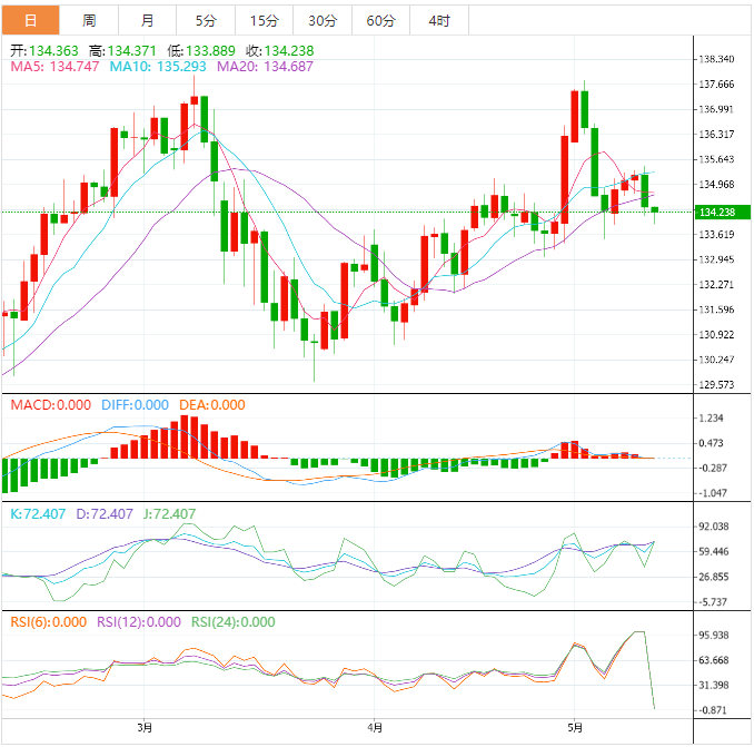 由于周四早间市场仍处于盘整模式,美元兑日元获得了从日内低点和周底反弹的买盘。即便如此,日元兑美元仍在134.20附近保持温和卖出价,截至发稿前连续两天下跌。