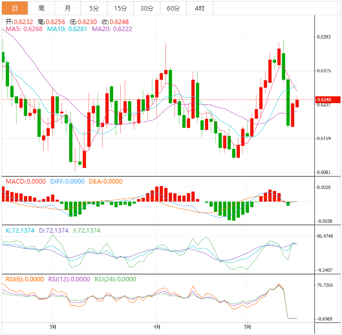 由于中国国家统计局公布的4月份年度零售销售数据低于预期,纽元兑美元汇率跌破0.6250。经济数据的增长速度为18.4%,低于预期的21.0%,但高于之前公布的10.6%。