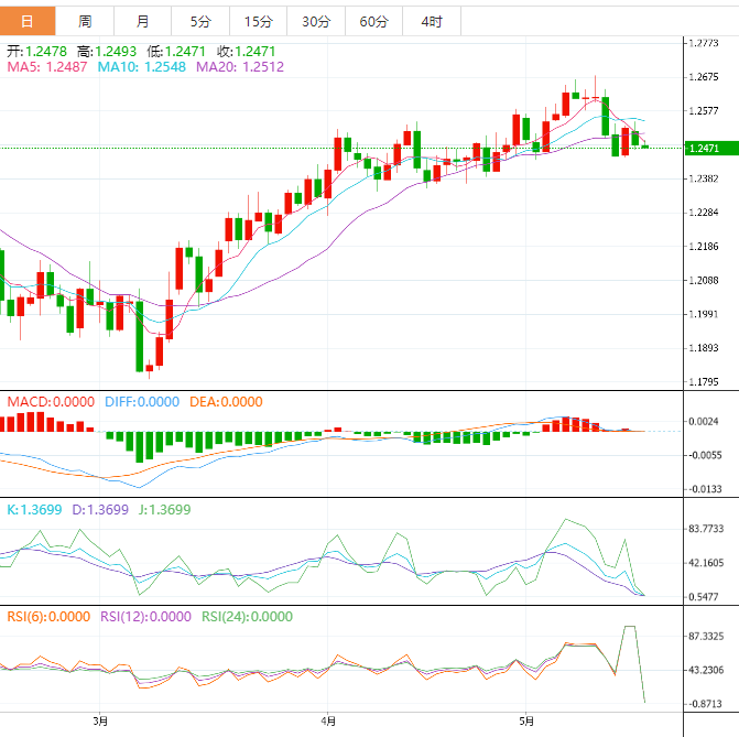 如果英镑跌破5月12日的低点1.2440,将触发上升通道形态的突破,并使英镑暴露于4月21日的低点1.2367,随后是4月3日的低点1.2276。