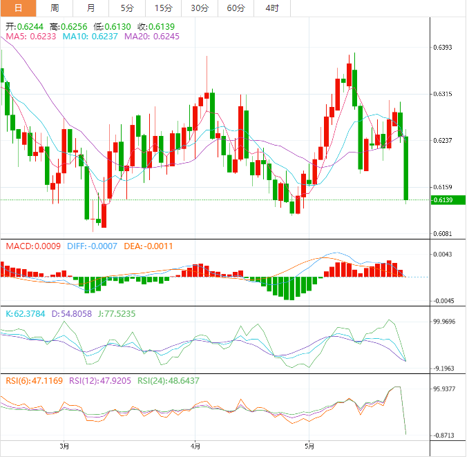 纽元兑美元延续了前一天从0.6300整数关口开始的跌势,在新西兰储备银行本周三宣布其政策决定后,纽元兑美元受到沉重的抛售压力。欧洲盘早盘,现货价格的下行轨迹仍未中断,并在最后一小时将现货价格拉低至近一个月低点,在0.6130附近。