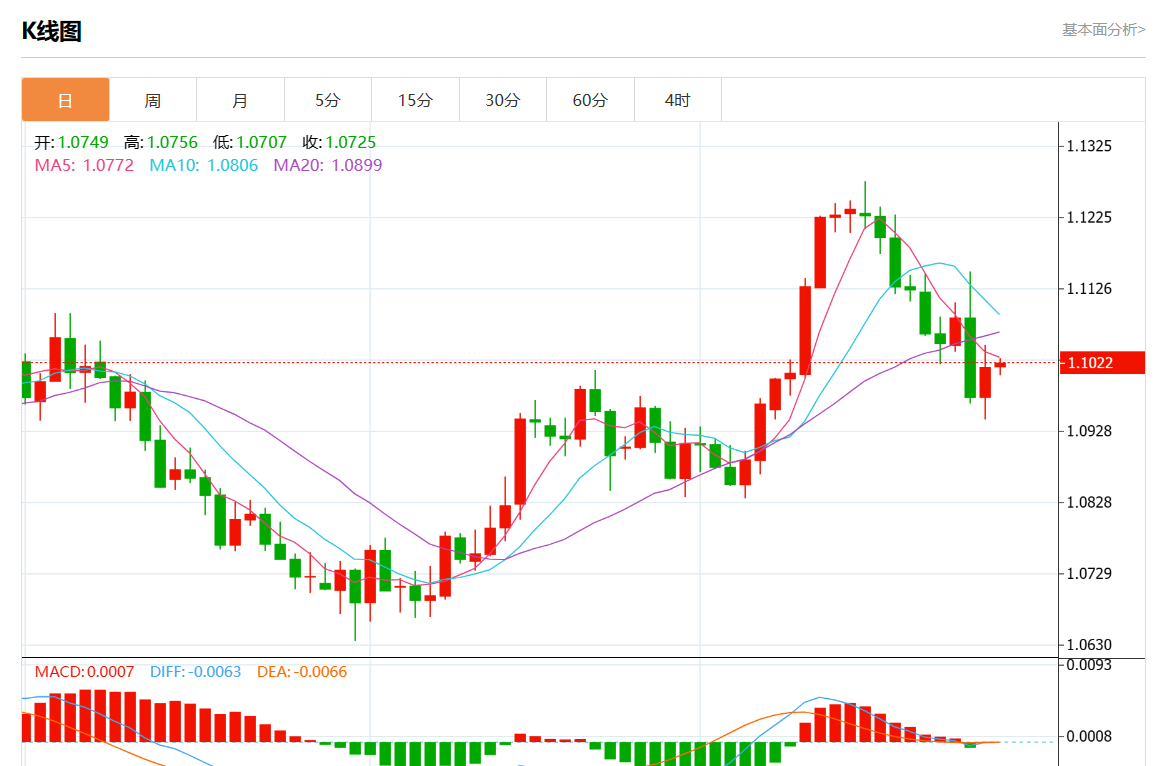 周二欧市盘中,欧元/美元最新报1.1015,日图跌0.01%