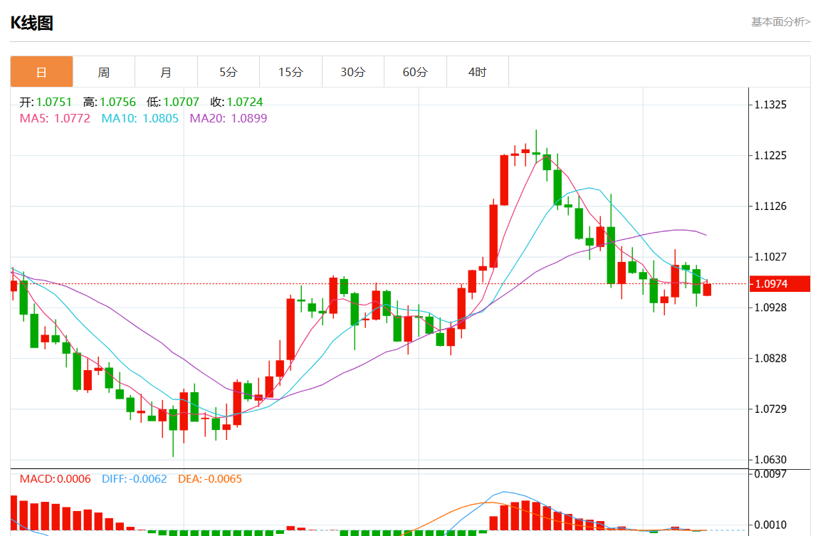 周三欧市盘中,欧元/美元最新报1.0974,日图跌0.17%