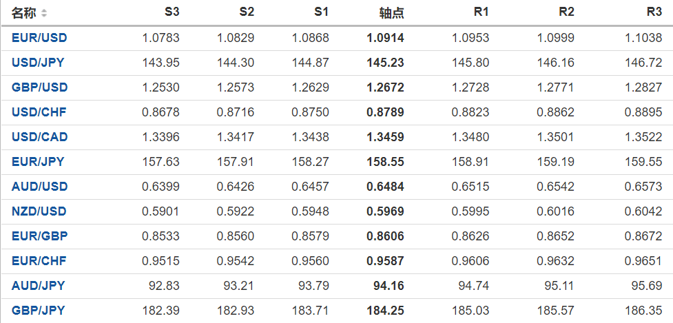 日元:美元/日元收高,收报145.549,涨幅0.43%。技术面上,汇价上行的初步阻力位于145.861,进一步阻力位146.186,关键阻力位于146.793;汇价下行的初步支撑位于144.929,进一步支撑位于144.322,更关键支撑位于143.997。