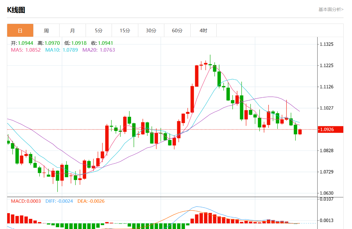 周二欧市盘中,欧元/美元最新报1.0922,日图涨0.16%