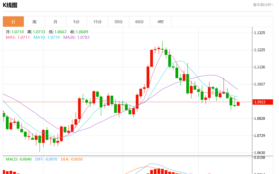 周三欧市盘中,欧元/美元最新报1.0920,日图涨0.18%