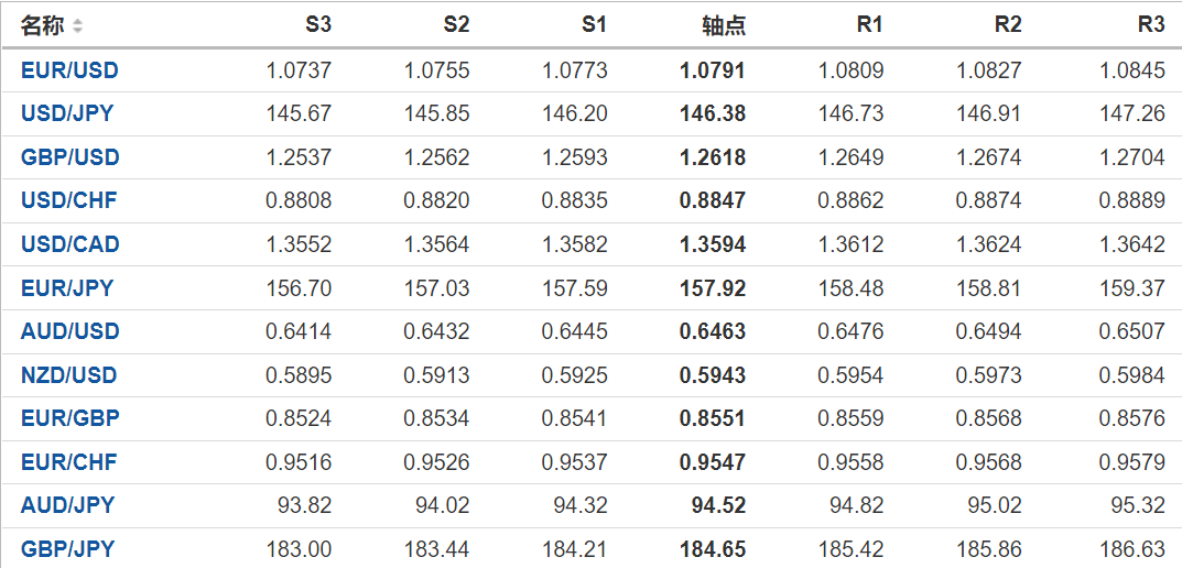 欧元/美元收报1.07895;英镑/美元收报1.26188;澳元/美元收报0.64574;美元/日元收报146.368;美元/加元收报1.35887;美元/瑞郎收报0.88342。