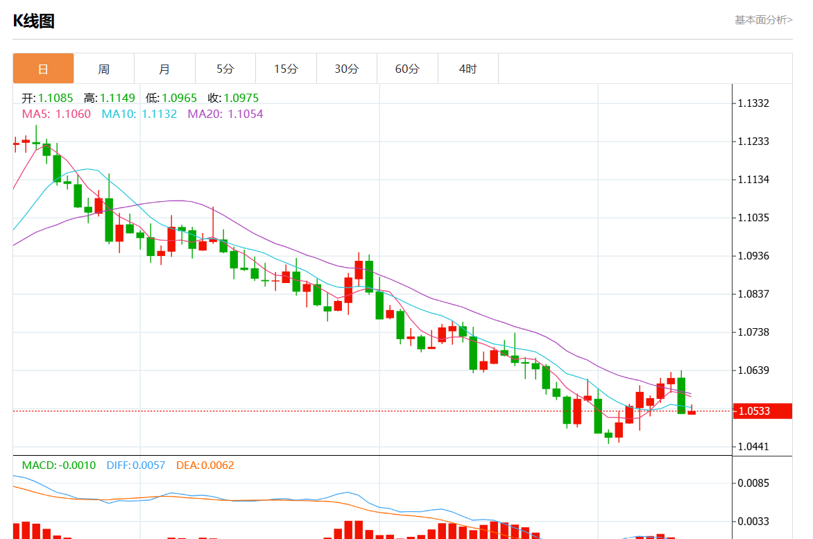 周五欧市盘中,欧元/美元最新报1.0538,日图涨0.09%.