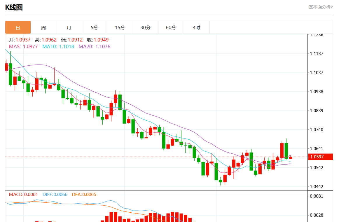 周三欧市盘中,欧元/美元最新报1.0596,日图涨0.06%.