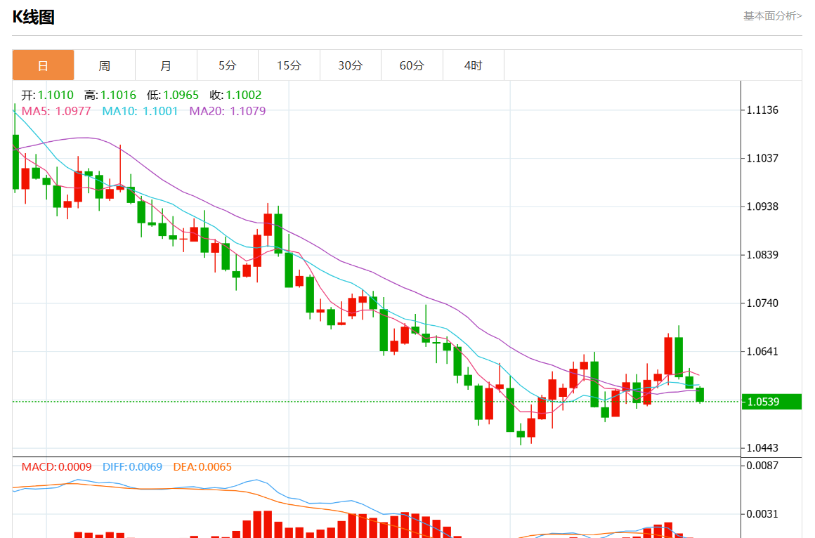 周四欧市盘中,欧元/美元最新报1.0537,日图跌0.27%.