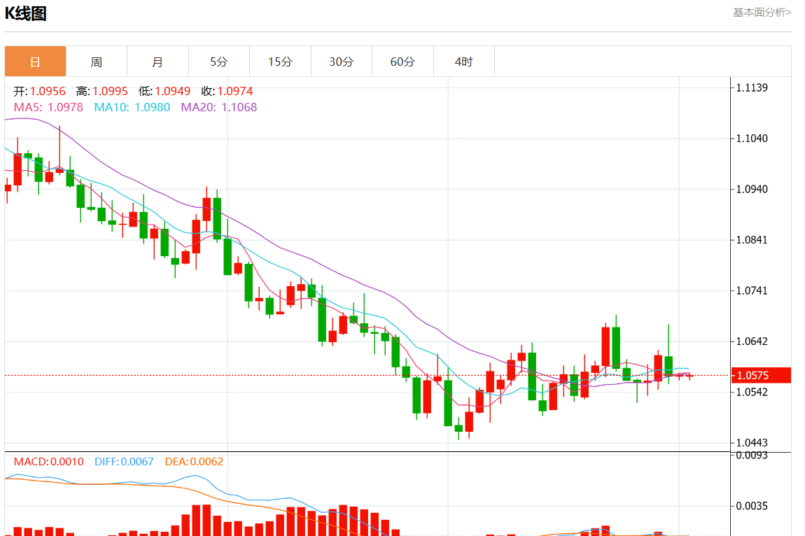 周三欧市盘中,欧元/美元最新报1.0575,日图涨0.01%.