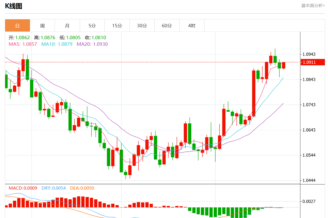 周四欧市盘中,欧元/美元最新报1.0914,日图涨0.24%.
