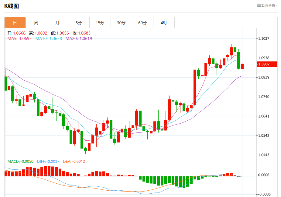 周五欧市盘中,欧元/美元最新报1.0910,日图涨0.23%.