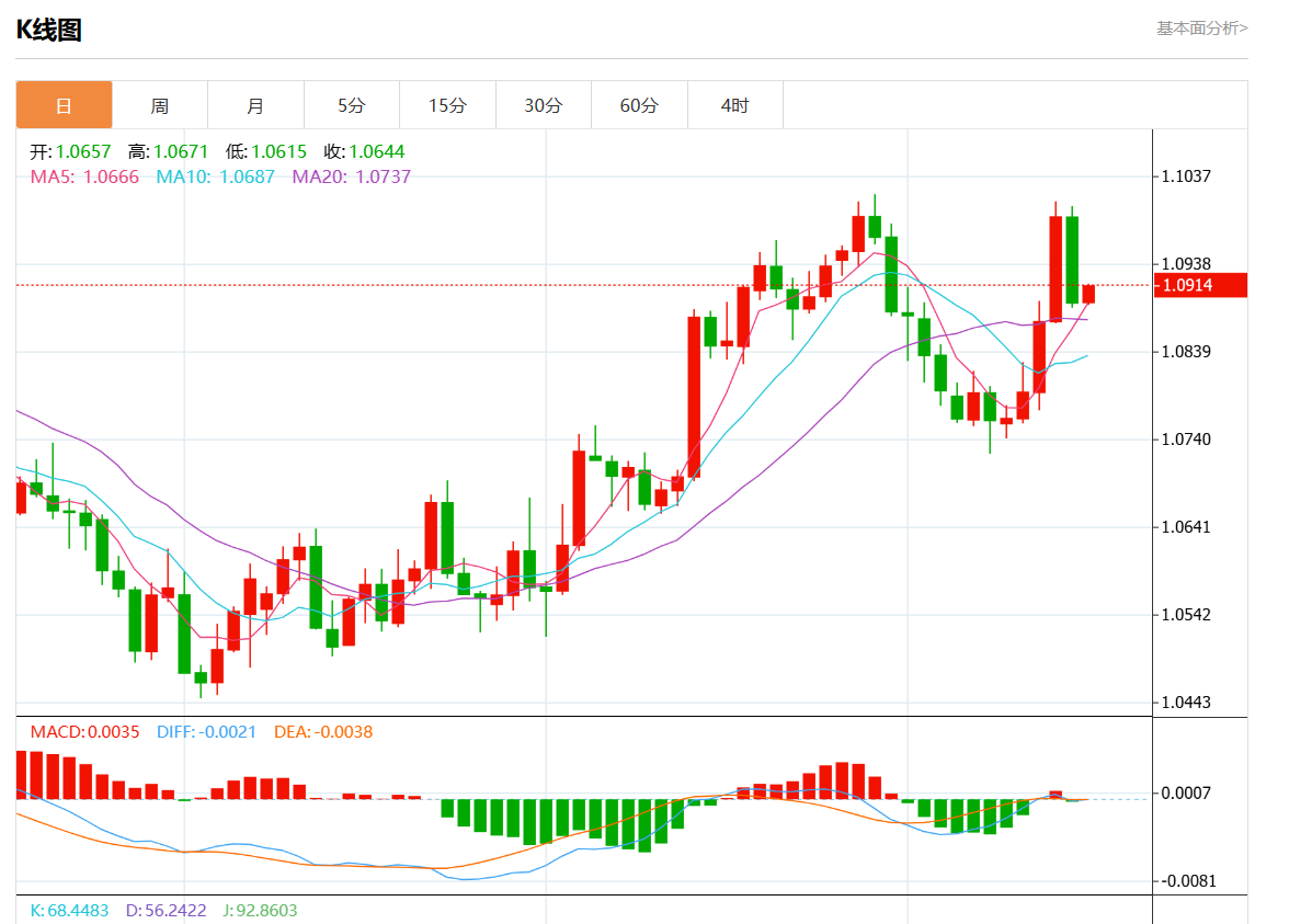 周一欧市盘中,欧元/美元最新报1.0917,日图涨0.20%.