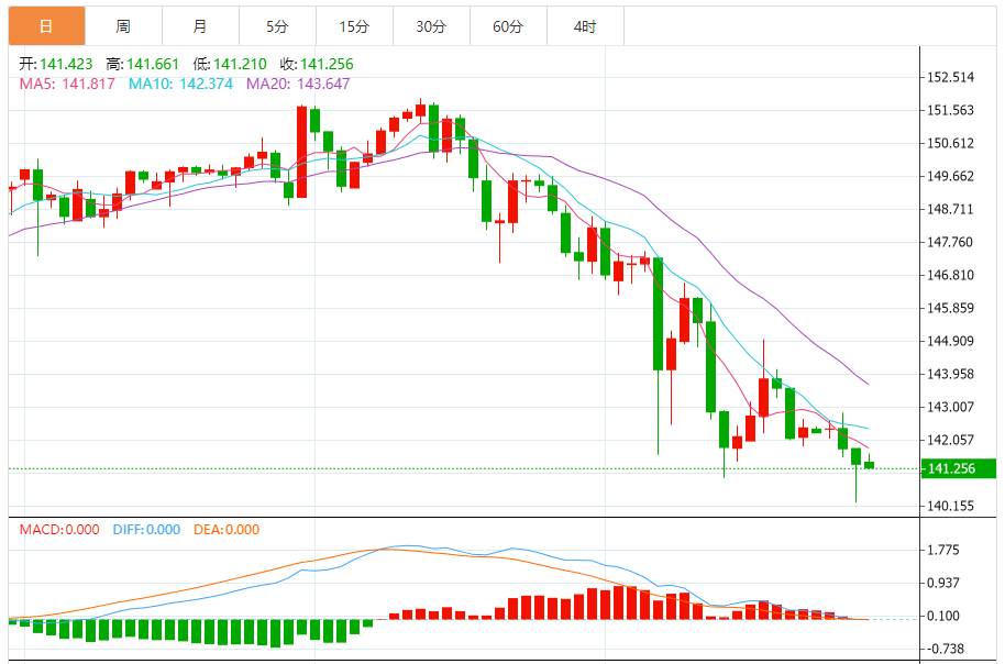 支撑位:141.05 141.16 141.24