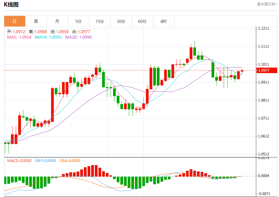 汇价高见1.0988,低见1.0958。上一交易日,汇价收于1.0972。