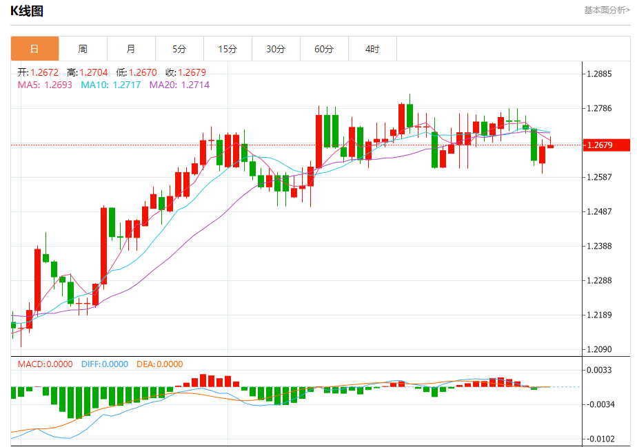 汇价高见1.2704,低见1.2670。上一交易日,汇价收于1.2676。