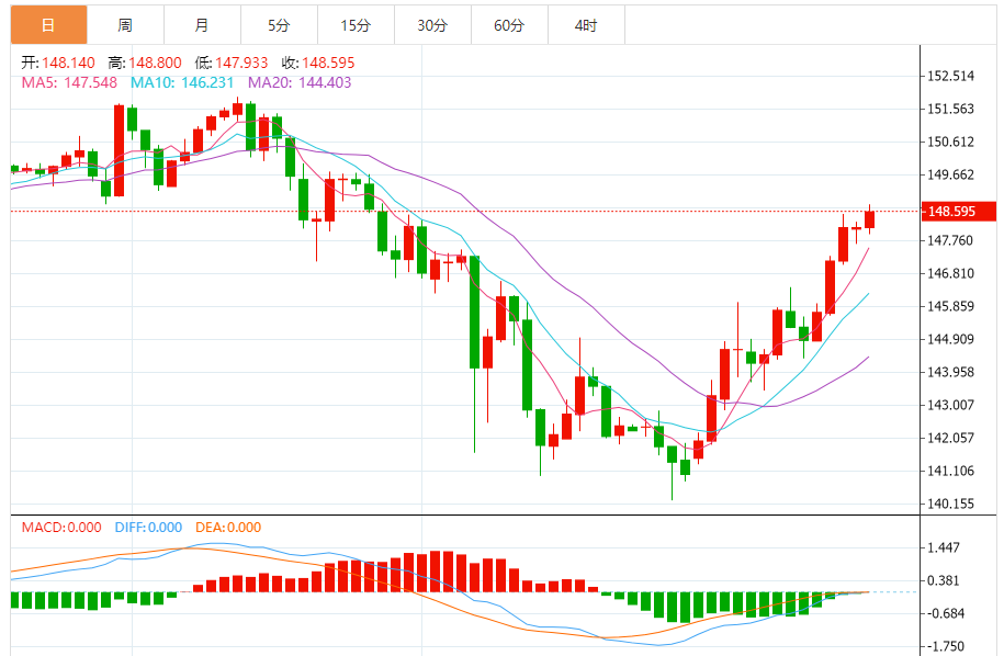 周五(1月19日),美元/日元上涨,暂报148.60,涨幅0.30%。