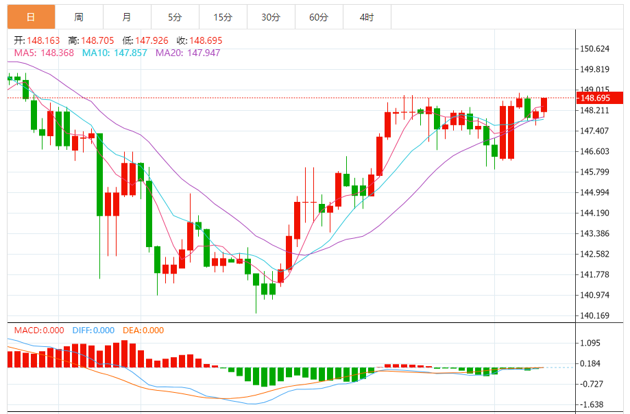 周四(2月8日),美元/日元上涨,暂报148.715,涨幅0.36%。