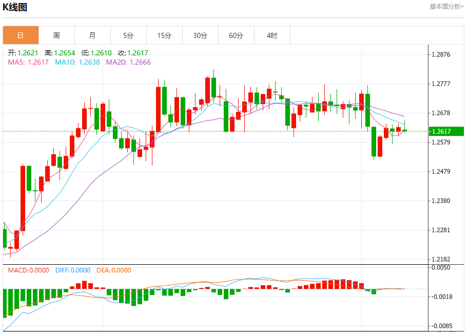 汇价高见1.2654,低见1.2610。上一交易日,汇价收于1.2629。