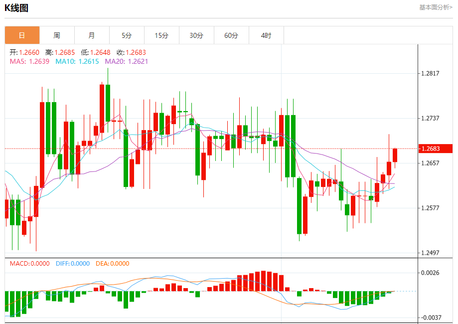 汇价高见1.2685,低见1.2648。上一交易日,汇价收于1.2660。