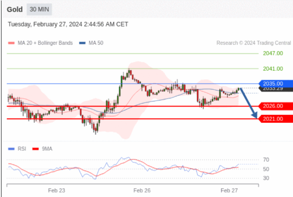 在 2035.00 之下,看跌,目标价位为 2026.00 ,然后为 2021.00 。