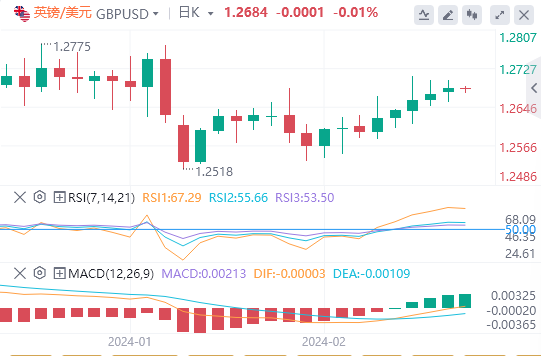 周二欧市早盘,英镑/美元仍遇阻1.2700关口。英国央行(BOE)行长安德鲁-贝利(AndrewBailey)和其他政策制定者上周在英国财政委员会作证引发了推迟降息的猜测,这提振了英镑,并成为英镑/美元的顺风。英镑/美元目前交投于1.2683附近,当日上涨0.01%。
