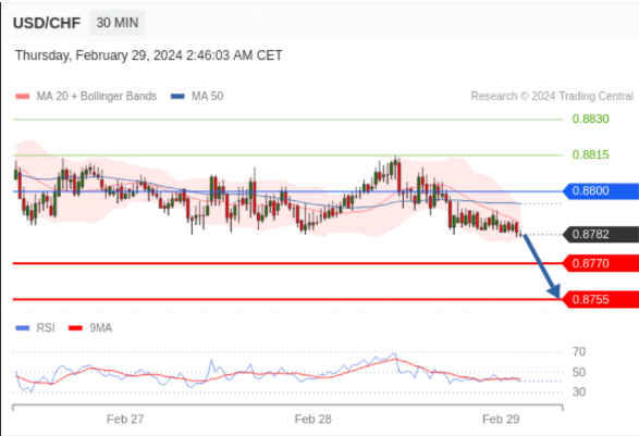 在 0.8800 之下,看跌,目标价位为 0.8770 ,然后为 0.8755 。