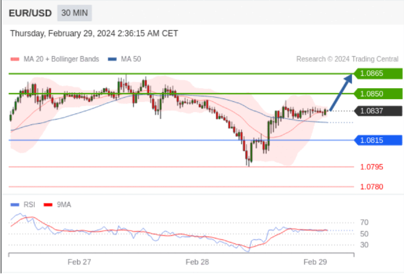 在 1.0815 之上,看涨,目标价位为 1.0850 ,然后为 1.0865 。