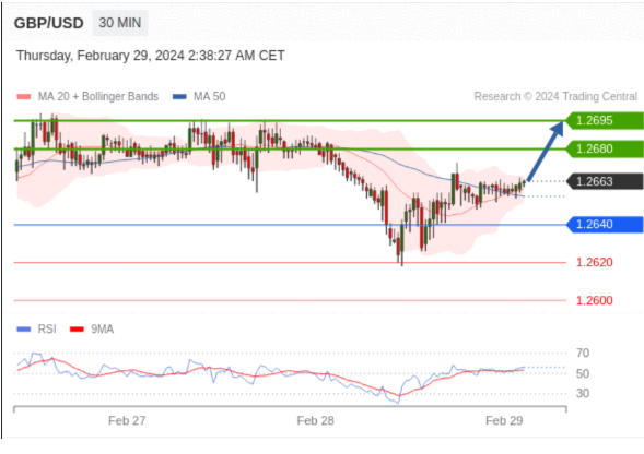 在 1.2640 之上,看涨,目标价位为 1.2680 ,然后为 1.2695 。