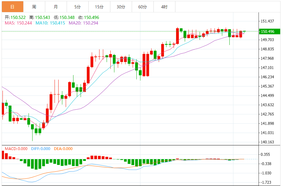 周二(3月5日),美元/日元下跌,暂报150.515,跌幅0.01%。