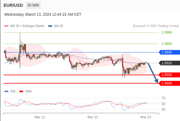 在 1.0945 之下,看跌,目标价位为 1.0905 ,然后为 1.0890 。