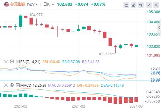 美元指数在当前水平附近有一个短期支撑,如果守住,短期内可能会涨向103.50或104。值得注意的是,103.50是短期阻力位。短期内,102.70-103.50的窄幅区间和102-104的宽幅区间可能得以维持。