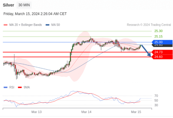 在 25.00 之下,看跌,目标价位为 24.73 ,然后为 24.60 。