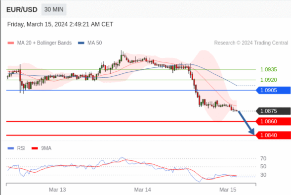 在 1.0905 之下,看跌,目标价位为 1.0860 ,然后为 1.0840 。