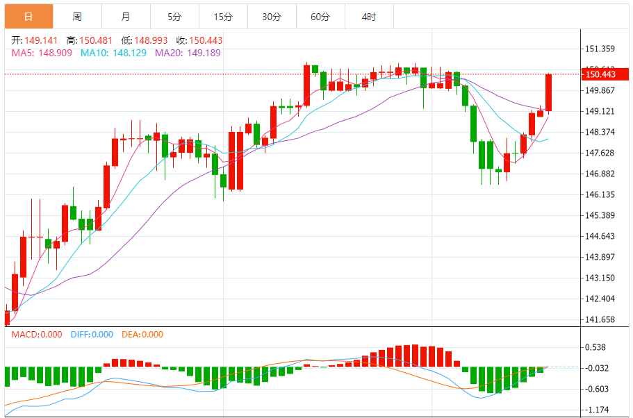 支撑位:149.59 149.76 150.04